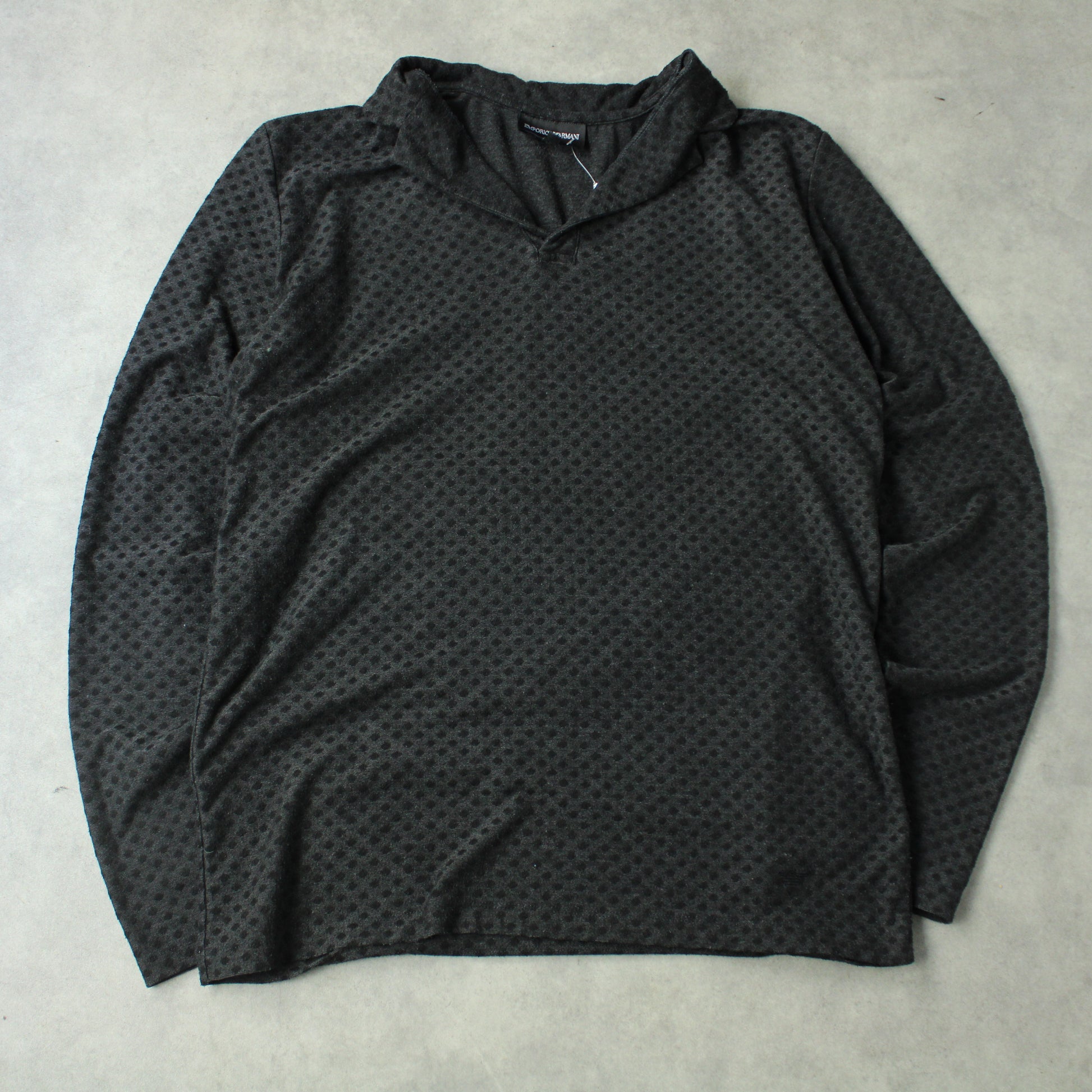 Emporio Armani Patterned Long Sleeve Polo – Charcoal Grey (Man-M)