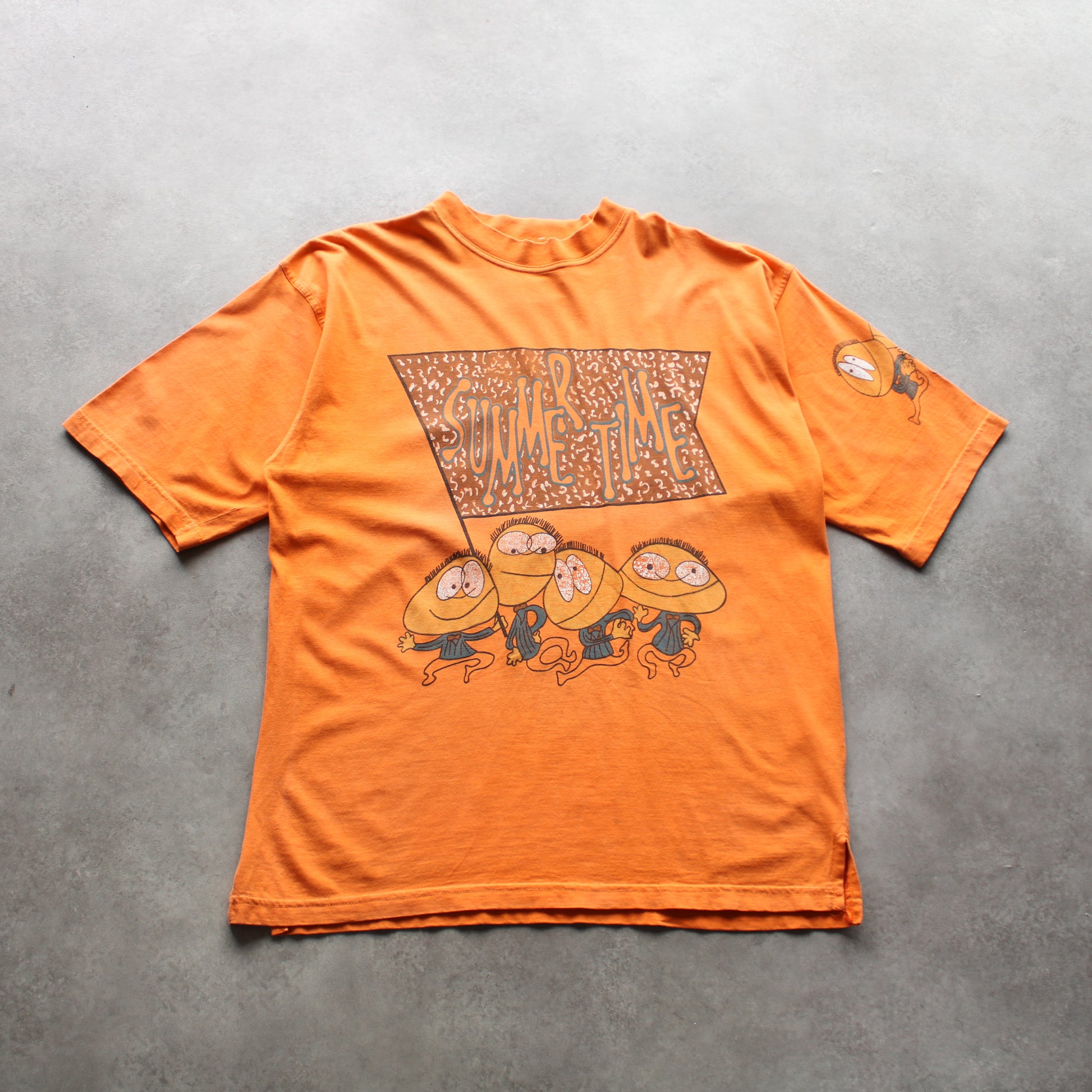 Vintage Cartoon Graphic T-Shirt – Orange, Summertime Print (Man-XL)