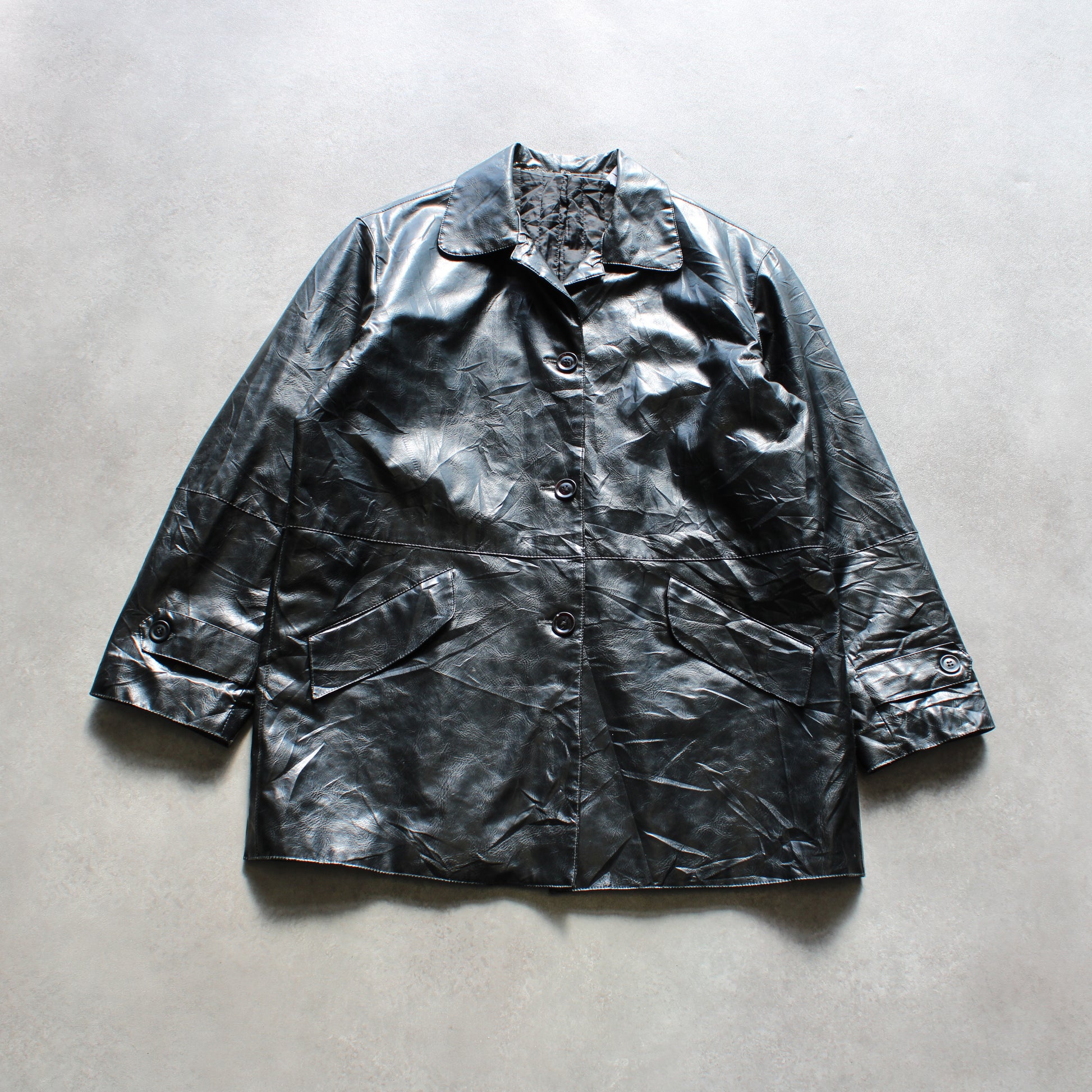 Vintage Faux Leather Jacket – Black (Man-L)